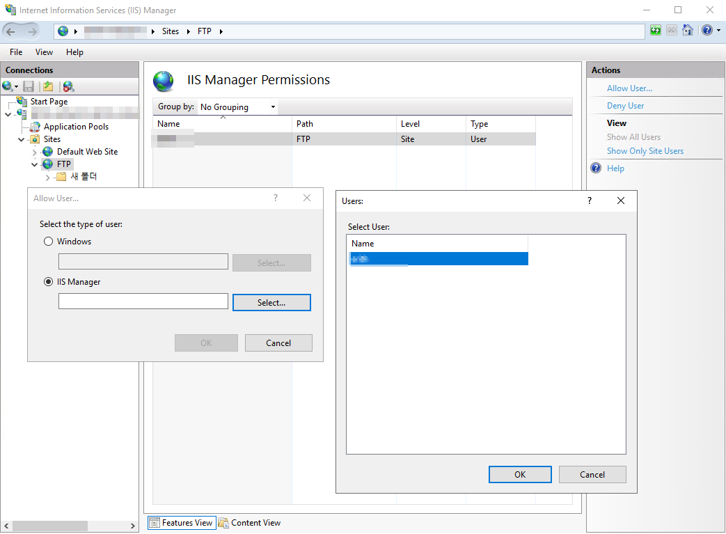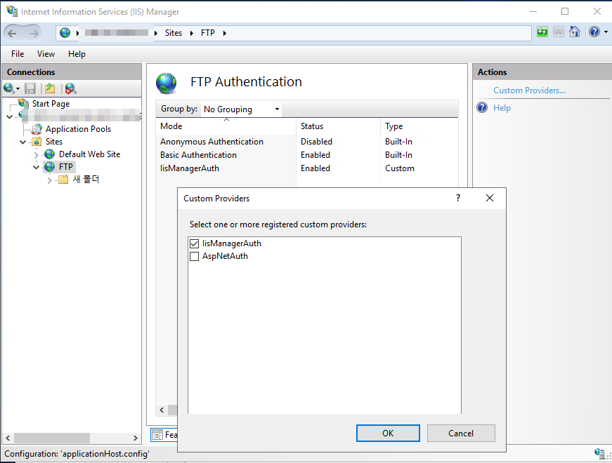 3. FTP 인증에서 IIS ManagerAuth가 설정되어 있어야 합니다.