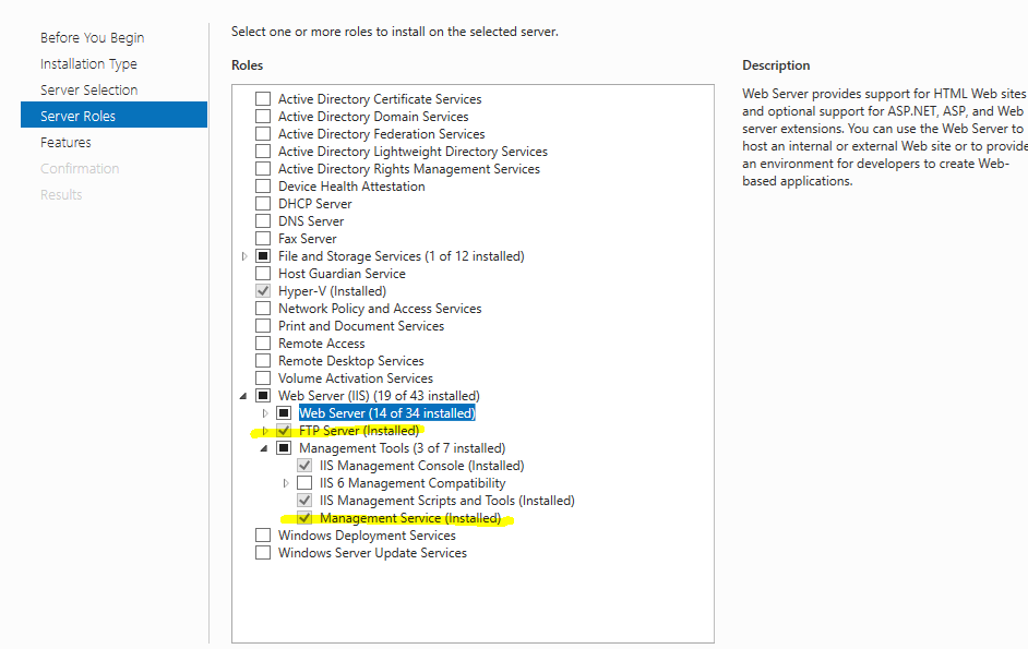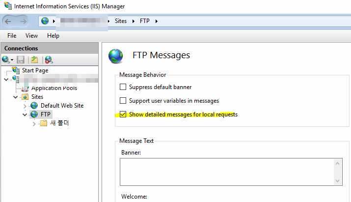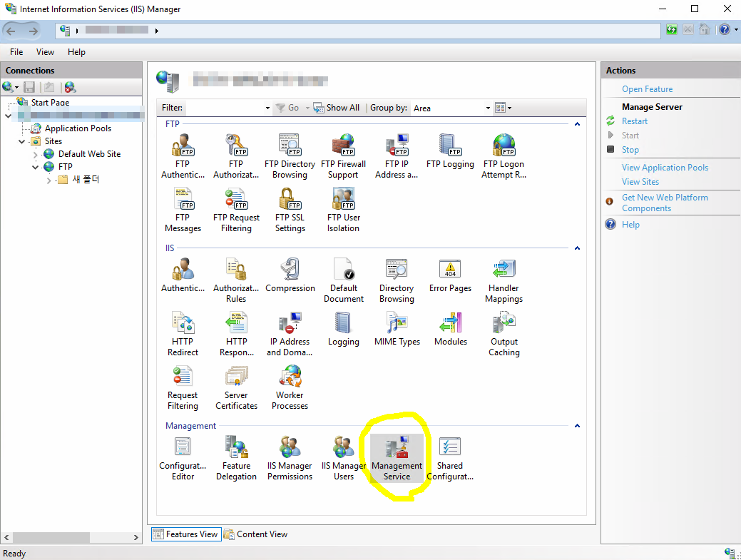 당연한 이야기지만 FTP서비스와 Management 서비스가 설치되어 있어야 합니다.