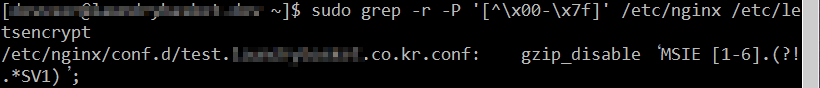 grep -r -P '[^\x00-\x7f]' /etc/nginx /etc/letsencrypt/ 해서 어느파일에서 00 ~7f 문자가 사용되었는지 확인합니다.