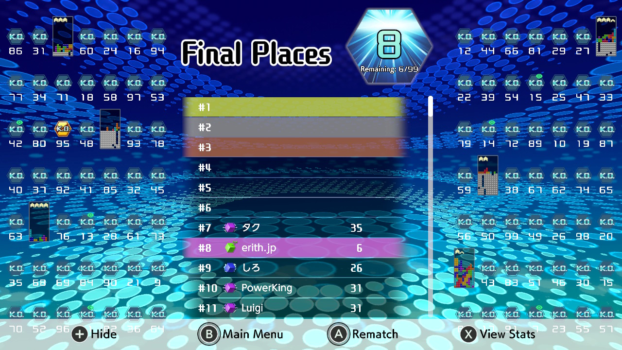나름 테트리스 좀 한다고 생각했는데, 99명중에 8등도 쉽지 않군요... 8등도 잘한겁니다 ㅠㅠ