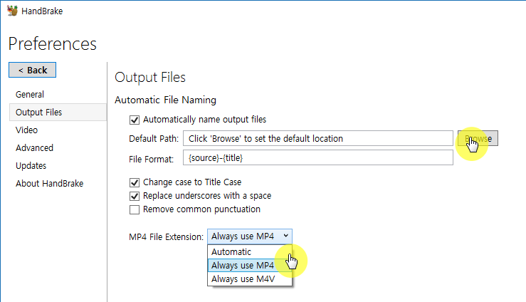 그리고 MP4 File Extension에서는 Always use MP4를 선택했습니다.(이건 옵션입니다.)