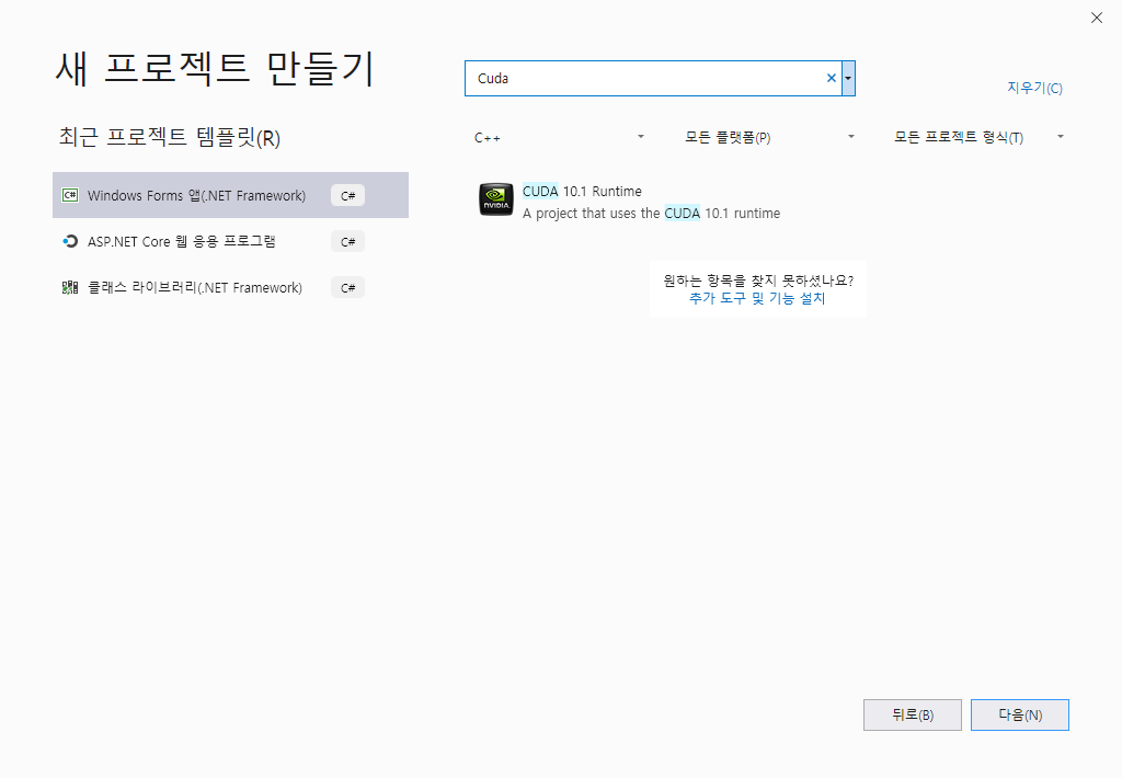 여기서 템플릿을 CUDA로 검색해도 템플릿이 보이지 않았습니다.