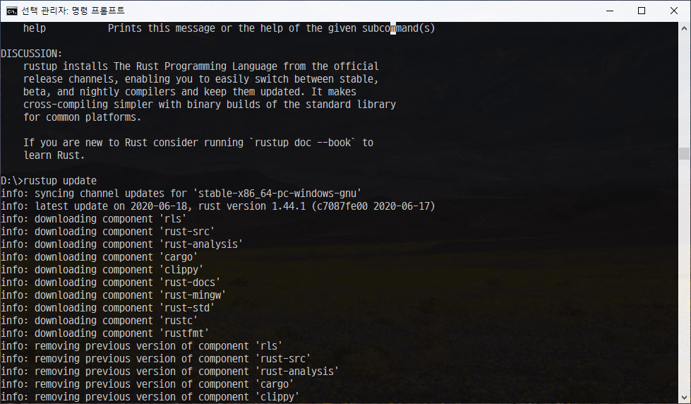 그러면 rustup update 를 해서 rust 환경을 최신으로 업데이트 해야합니다.