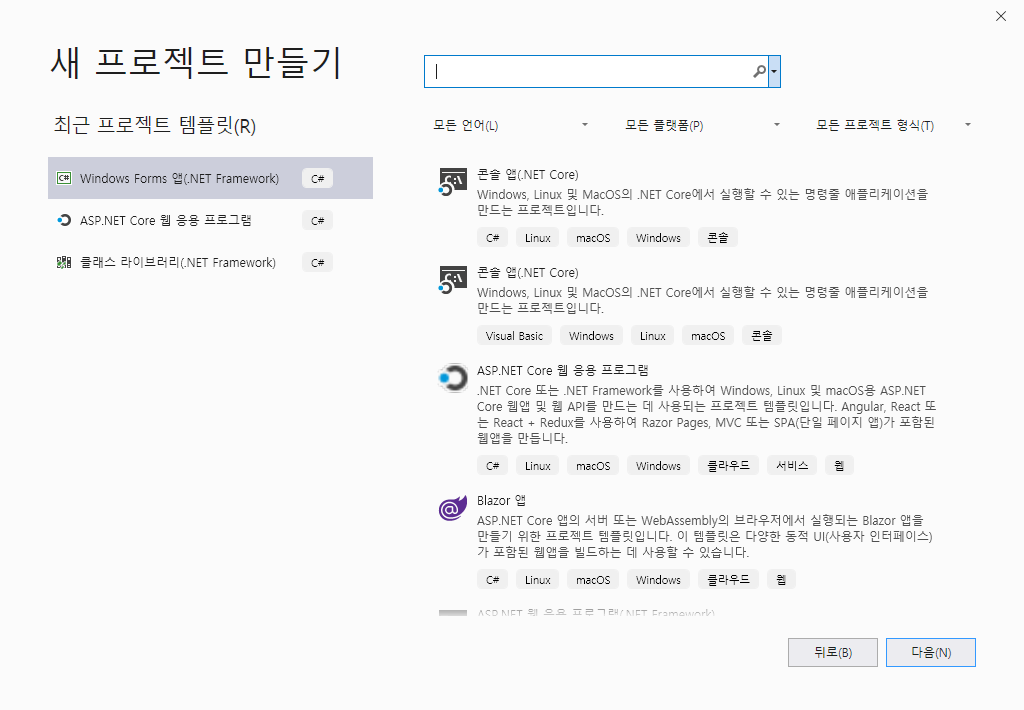 여기서 템플릿을 CUDA로 검색해도 템플릿이 보이지 않았습니다.