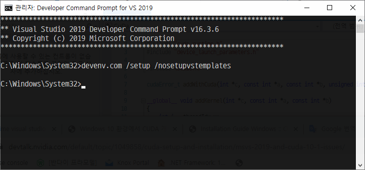 4. Visual Studio 개발자 프롬프트를 관리자 권한으로 실행하여 아래 명령어를 실행합니다.